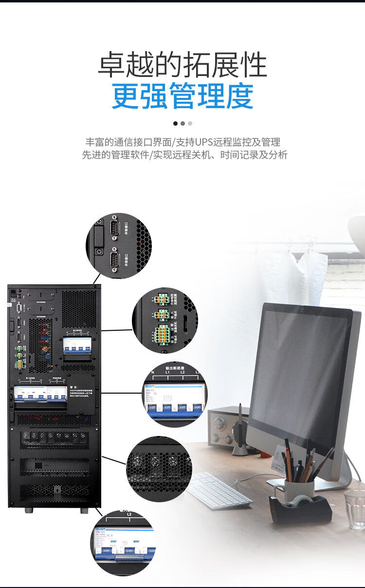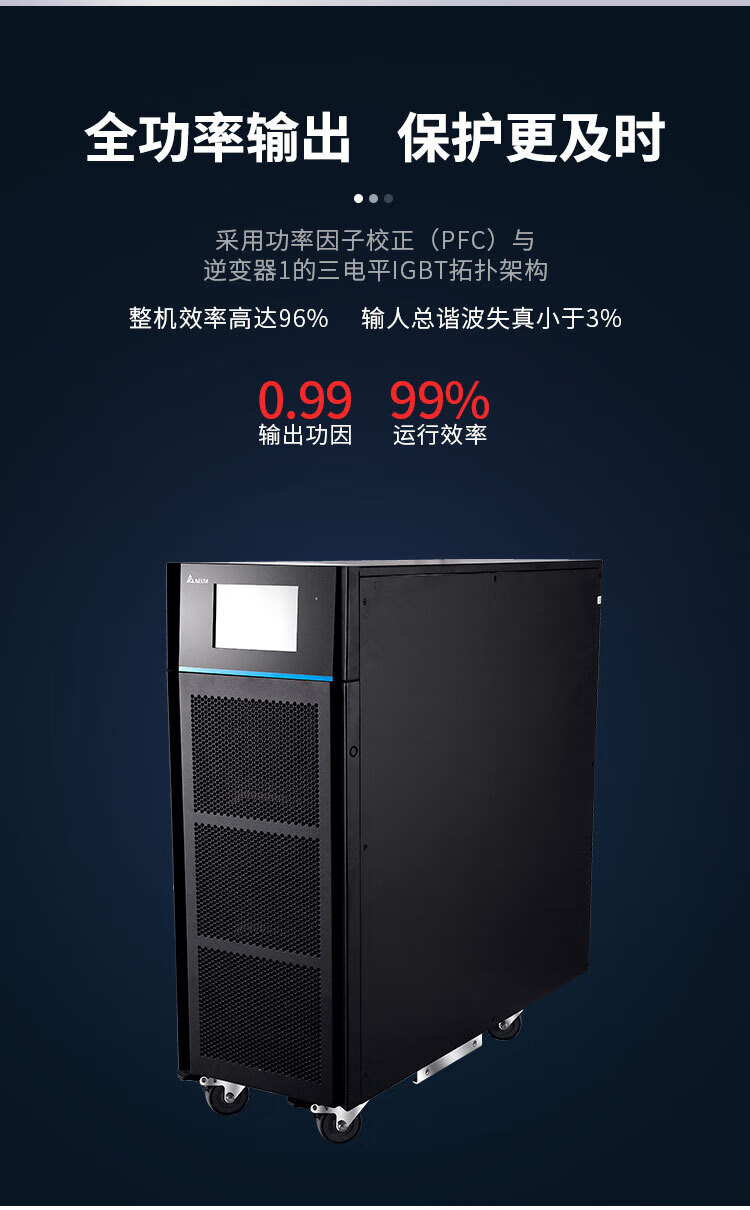 Modulon DPH系列具有完全容错设计,可通过内置控制机制来达成电源模块的自体冗余。完全控制逻辑让系统在某个电源模块故障的情况下,能够自动同步并自动切换到备份模块,确保UPS持续